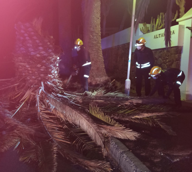 Los bomberos del Consorcio de Seguridad y Emergencias de Lanzarote intervinieron este domingo por la noche al precipitarse una palmera sobre la calle en Puerto del Carmen.