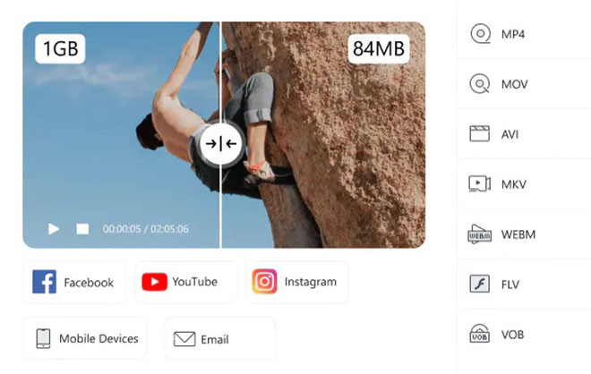 Compresión de video. La potente herramienta de compresión de videos de Wondershare UniConverter permite comprimir video 8K reduciendo la pérdida de calidad. Esto hará que te resulte más sencillo subirlos a plataformas donde el espacio de alojamiento es ilimitado, como podría ser tu página web.