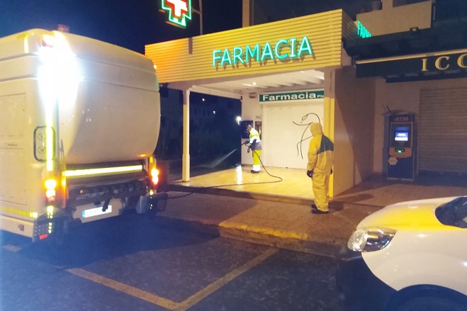 Yaiza desinfecta las zonas públicas más frecuentadas durante la emergencia