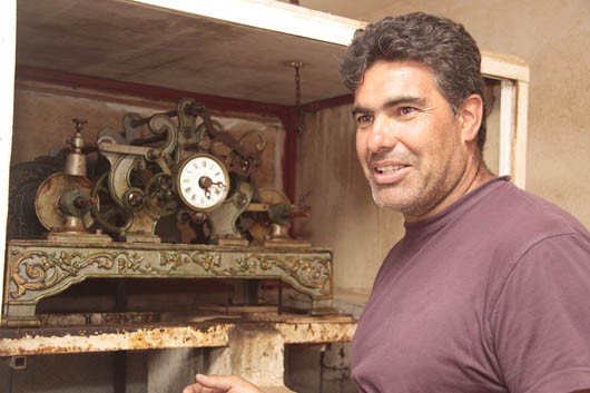 Alberto Perdomo (Haría, 1973) ama con locura la memoria de las paredes. Por eso, y por haber sido monaguillo en la Iglesia de la Encarnación, conoce bien unos engranajes que todos los vecinos del pueblo escuchan cada media hora, pero que no han visto jamás.