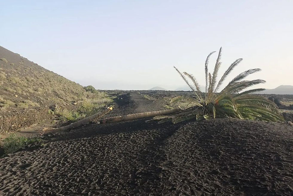 La presidenta del Cabildo de Lanzarote, Dolores Corujo, ha publicado este lunes en sus redes sociales las imágenes de una peculiar palmera, muy fotografiada, cuyo tronco ha sido aparentemente cortado.