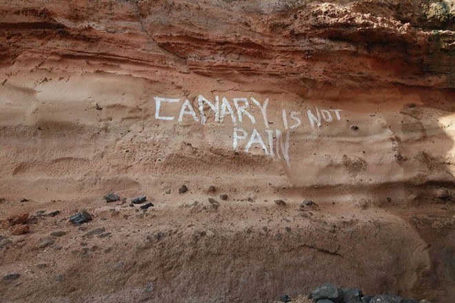 Las pintadas se han hecho en un suelo afectado por un expediente de declaración de bien de interés cultural (BIC) dada su riqueza paleontológica. “Sabemos que en esta zona de Lanzarote se registra la fauna terrestre más antigua de Canarias y que ésta se encuentra en un avanzado estado de investigación”, explica el colectivo.