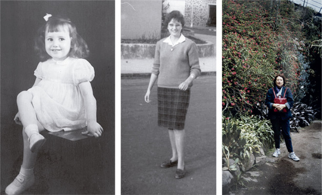 A los dos años de edad, durante sus estudios de Magisterio y en uno de sus viajes. Fotos: Cedidas.