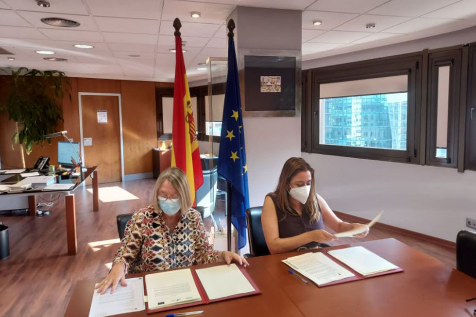 María Rosa Cobo Mayoral, directora general de ACUAES, y María Dolores Corujo Berriel, presidenta del Cabildo y del Consorcio de Aguas de Lanzarote, han firmado hoy el acuerdo cuyo objetivo es dotar a Arrecife y Tías de un sistema de saneamiento y depuración integral que permita resolver el problema de incumplimiento de la Directiva sobre tratamiento de aguas residuales urbanas D1991/271/CEE, así como regenerar las aguas residuales depuradas para permitir su reutilización para riego agrícola y otros usos municipales.