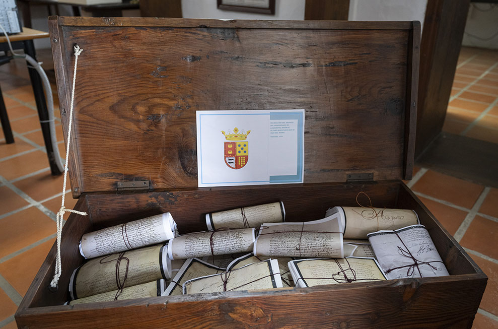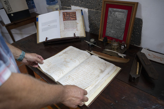 “Con anterioridad al archivo del Ayuntamiento existió el denominado Archivo del Marquesado de Lanzarote, que previamente fue Archivo del Señorío, fruto del sistema de organización que traen los señores normandos cuando llegan a la Isla y que incluye los poderes de los reyes para tomar posesión del territorio, la potestad para acuñar moneda, o el anterior acto de vasallaje con Enrique III y Juan II”. Toda esa documentación fue pasando a manos de los distintos señores de Canarias, hasta llegar a la familia que establece la capitalidad en La Villa, Inés Peraza y su marido, Diego García de Herrera. “A la par que se crea el señorío, también se crea un concejo o ayuntamiento, cuyo ámbito jurisdiccional era la isla. En su capital, Teguise, se instalan un alcalde mayor, un alguacil, regidores, y un escribano, y empiezan a asentarse los documentos notariales que se suman al resto los papeles custodiados desde la época normanda”.