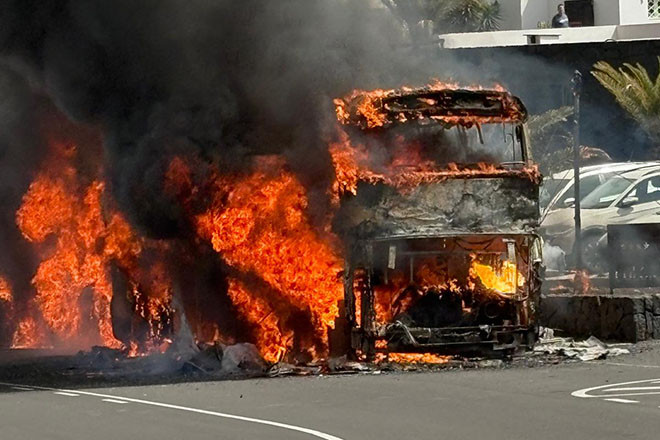 Arde una guagua en la Avenida Papagayo, en Playa Blanca