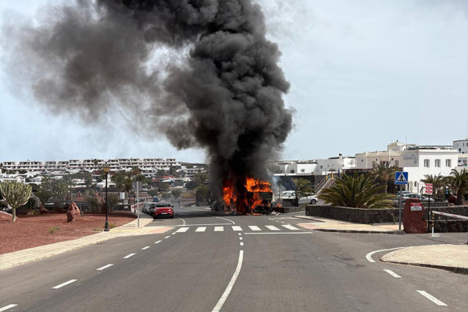 Los efectivos del Consorcio de Seguridad y Emergencias del Cabildo de Lanzarote han extinguido las llamas de una guagua en la tarde de este viernes en la localidad de Playa Blanca.
