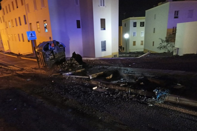 Efectivos del Parque Central del Consorcio de Seguridad y Emergencias de Lanzarote actuaron en la madrugada del jueves en la extinción de un incendio de contenedores en la calle Palencia de Arrecife.