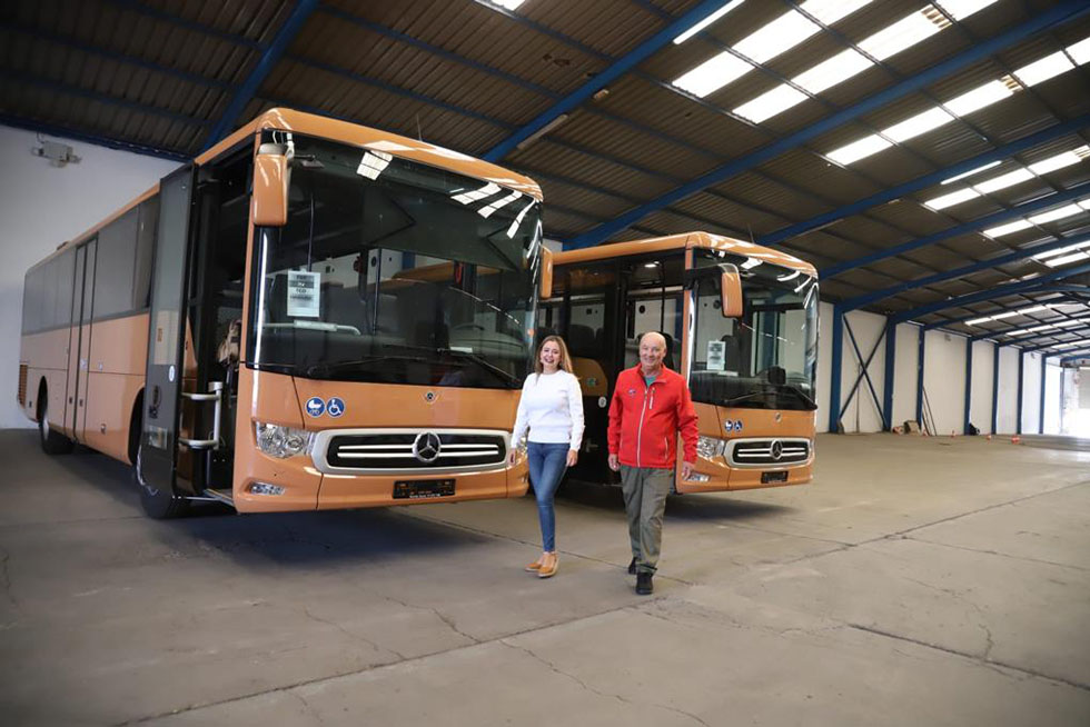 Las seis nuevas guaguas que los Centros Turísticos destinarán a las Montañas del Fuego disponen de motores híbridos y carrocería Mercedes. Dos de ellas están adaptadas a las necesidades de las personas con movilidad reducida, lo que permitirá a la entidad ofrecer un servicio más moderno, seguro y sostenible.