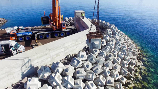 OHL ha indicado que usará en Arrecife su innovación tecnológica 'Cubipod', que se utiliza en la construcción de mantos principales de diques en talud y "presenta significativas ventajas frente a los bloques tradicionales en cuanto a facilidad de colocación, ahorro de materiales y comportamiento durante su vida útil".