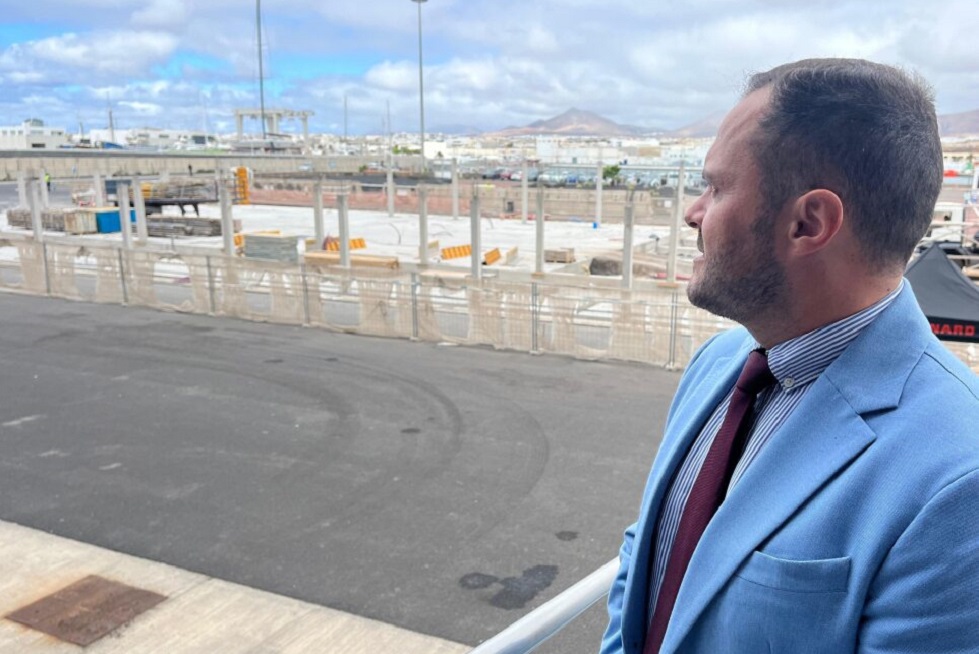 El alcalde de Arrecife, e integrante del Consejo de la Autoridad Portuaria de Las Palmas, Yonathan de León Machín, muestra su satisfacción por la puesta en marcha de este edificio terminal en la capital conejera. El primer edil ha conocido de cerca el avance de las obras.