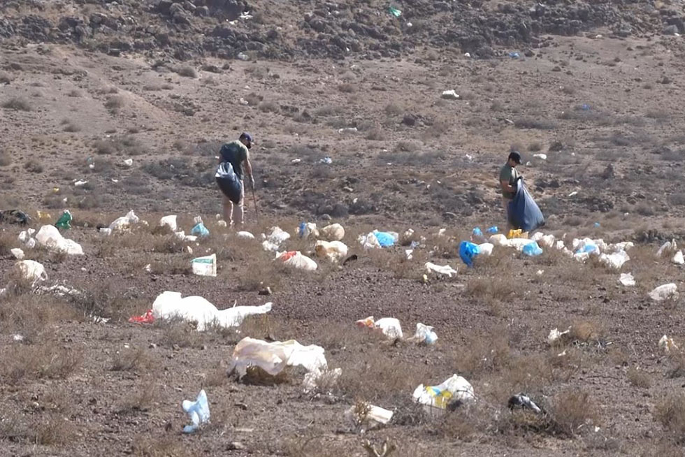 Arranca la limpieza de plásticos de la ladera de Zonzamas