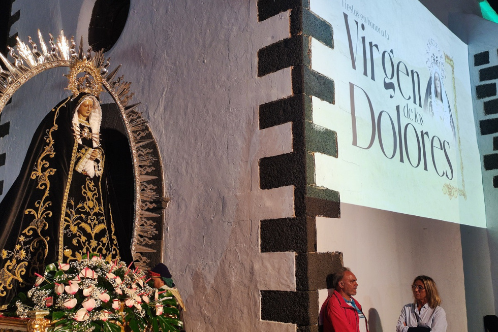 Por su parte, el alcalde de Tinajo, Jesús Machín, felicitó el trabajo de sus concejales, de técnicos y trabajadores del ayuntamiento, al párroco de Tinajo y al presidente cabildicio, Oswaldo Betancort así como a sus consejeros. Aprovechó para recordarles que "hay que pintar la Iglesia de Los Dolores cada año y que hay que adecentar la zona de los baños de Los Dolores". Machín agradeció al presidente del Cabildo su predisposición y también el hecho de aceptar que "estas fiestas son insulares y que Tinajo no debe cargar con los gastos un año más de forma unilateral". Machín honró a la Virgen dedicándole bonitas palabras en esta semana grande para ella y para los conejeros e invitó a disfrutar de unas fiestas con todo tipo de actividades con respeto y civismo.