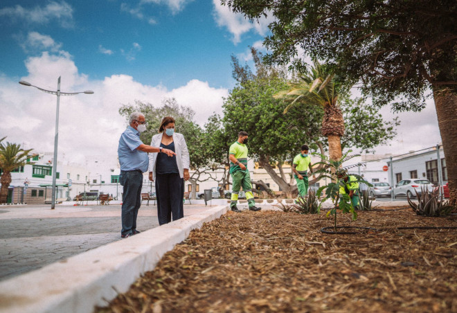 La alcaldesa de Arrecife, Astrid Pérez, que ha visitado junto al concejal de Parques y Jardines, Tomás Fajardo, la plaza Pío XX de Titerroy, ha remarcado que "durante este mandato se está impulsando la mejora y embellecimiento de todos los espacios públicos, los parques y jardines del municipio".