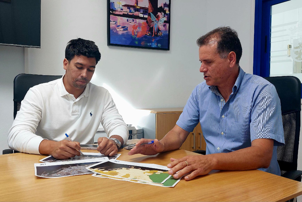 El concejal de Urbanismo del Ayuntamiento de Arrecife, Maciot Cabrera, y el consejero de Aguas del Cabildo de Lanzarote, Domingo Cejas, se reunieron esta semana con los técnicos de ambas instituciones en la Oficina Técnica municipal, con el objetivo de coordinar los trabajos del proyecto de renovación de las redes de distribución de agua para el abastecimiento en la Zona Este y la Zona Oeste de la capital, que cuenta con un presupuesto total de más de diez millones de euros (cinco por zona).