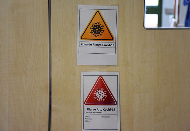 Al entrar en el nuevo espacio adaptado como UCI para coronavirus, una pegatina en la puerta avisa: “Zona de riesgo Covid 19”. En esta planta se han reconvertido quirófanos en estancias de cuidados intensivos “en dos tardes”. Se han copiado de forma exacta, hasta el mobiliario, y los monitores para controlar a los pacientes se han dejado fuera. La planta, de momento, está vacía, porque aún hay más camas de UCI que pacientes graves.