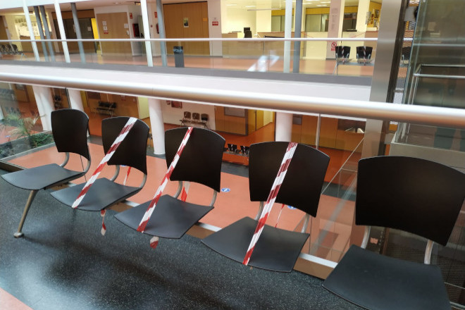 En las salas de juicios, además de colocarse mamparas de separación en el estrado, donde se sientan jueces, fiscales y abogados, se han retirado sillas en la zona del público para garantizar una distancia de seguridad. Después de cada sesión se limpiará la sala. “Si antes, por ejemplo en vistas relacionadas con medidas de familia, se ponía en agenda una cada 30 minutos, ahora habrá que poner una vista cada hora”, explicó De la Cruz.