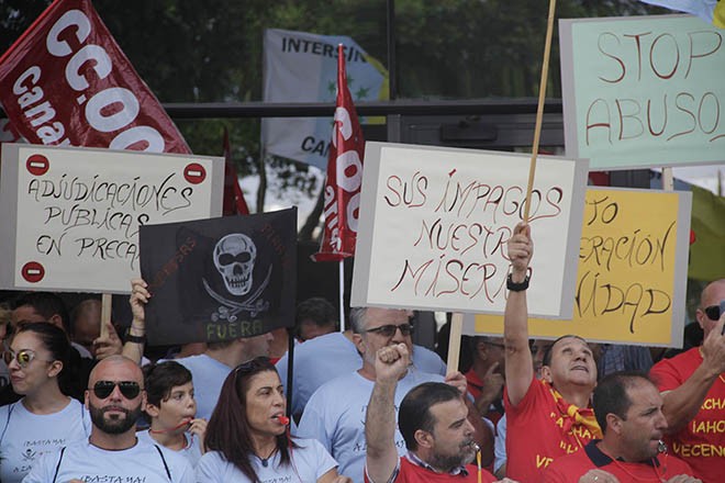 Barrios señala que el problema no está en los gerentes de las empresas en la Isla sino en las empresas matrices y por eso lo más probable es que se vaya a una huelga general en el sector a finales de septiembre. El pasado 7 de septiembre se desarrolló una concentración por parte de Intersindical Canaria a las puertas de los Juzgados para denunciar la precariedad en el sector.