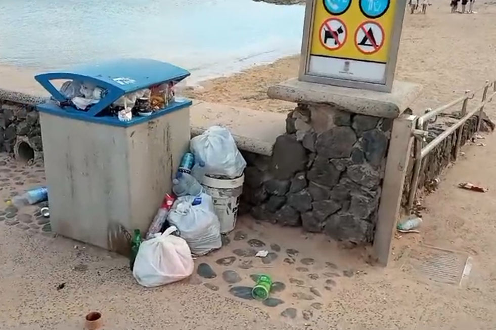 Basura en La Graciosa: papeleras a rebosar y residuos que terminan en el agua