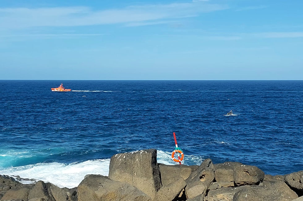 Fue entonces cuando fueron sorprendidos por un golpe de mar que cogió a dos de ellos en el agua, si bien uno pudo ser rescatado a unos 800 metros por el helicóptero del Grupo de Emergencias y Salvamento del Gobierno canario, han detallado las fuentes.