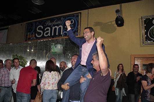 De vuelta al PSOE, sin terminar el recuento, José Montelongo ya comenzaba a perfilarse como ganador. Un concejal ya electo de San Bartolomé se quejaba de que con esos resultados iba a ser muy difícil gobernar y otro le decía que si era difícil para ellos, mucho más para el resto, ya que nadie había pasado de dos concejales. Con el recuento casi terminado, la alegría empezó a calar entre los militantes, que salieron a la calle y comenzaron a mantear a los apoderados del partido que llegaban desde otros municipios, y a reclamar que saliera la secretaria general a hablar. Ya era casi la una de la madrugada y a Montelongo lo bañaron en champán.