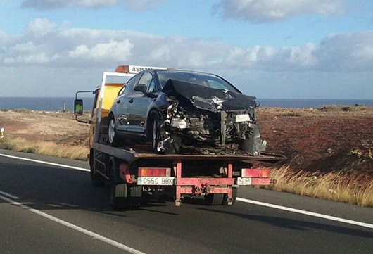 Los bomberos del Consorcio de Seguridad y Emergencias de Lanzarote se encargaron de la limpieza de la vía y colaboraron con los recursos de emergencias intervinientes.