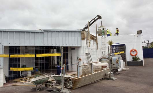 También se ha acometido la reparación del muro de protección del dique y el derribo del techo de uno de los almacenes para la construcción de uno nuevo.