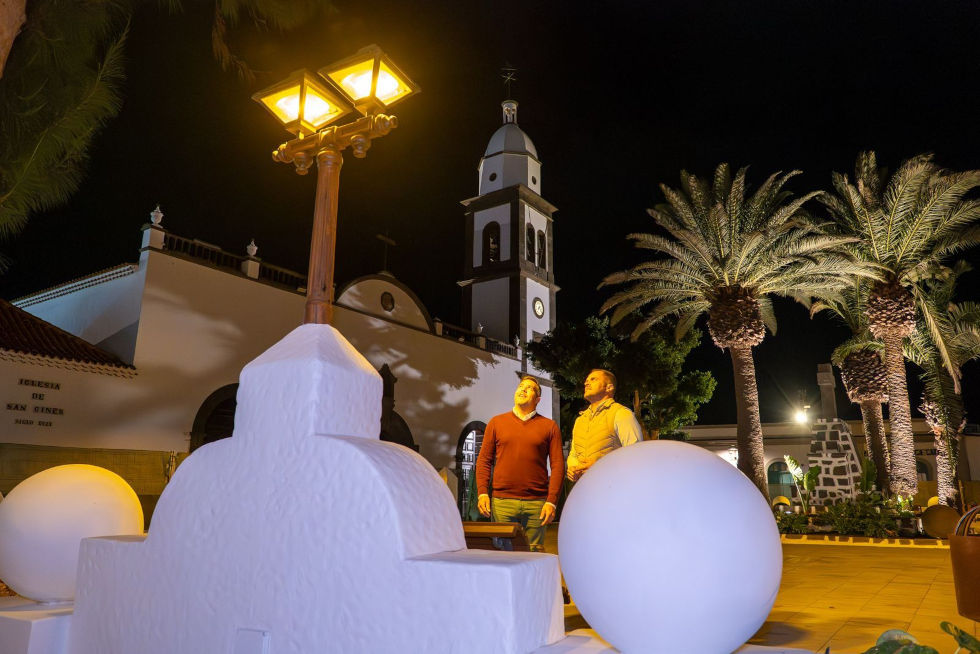 El alcalde de la ciudad acompañado por el consejero de Obras Públicas ha visitado, en horario de noche, esta plaza para contemplar su acabado y verificar su nueva iluminación nocturna que se proyecta en las farolas que recrea el diseño original creado por el artista César Manrique para esta plaza que tiene por nombre Las Palmas en recuerdo a la creación de la provincia de Las Palmas, tras la división provincial en Canarias realizada en las primeras décadas del pasado siglo XX.