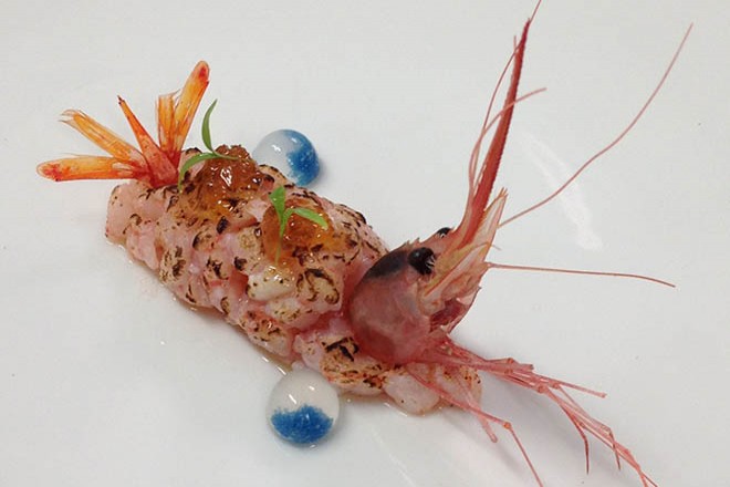 Un tartar de gambas de La Santa fue el protagonista del taller que Dailos Perdomo impartió en GastroCanarias. También participó en la ponencia inaugural, con dos elaboraciones: una sardina de La Tiñosa, escabeche de piña, salsa oriental, alga nori y pulpa de pimienta picona, y un cabrito ahumado con aire de su jugo, puré de calabaza de jable, alioli de ajo asado con azafranillo, tierra de ajo y polvo de cebolla.