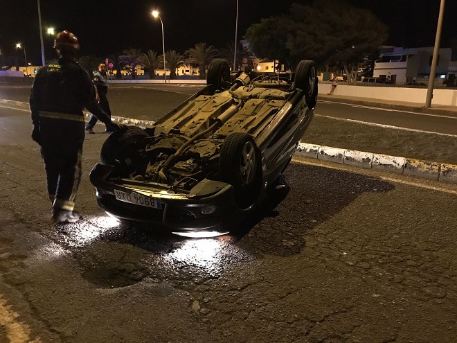 El vuelco se produjo sobre las 00.38 horas de la madrugada del martes, según indicó el Consorcio de Seguridad y Emergencias de Lanzarote. En el accidente los ocupantes no quedaron atrapados.