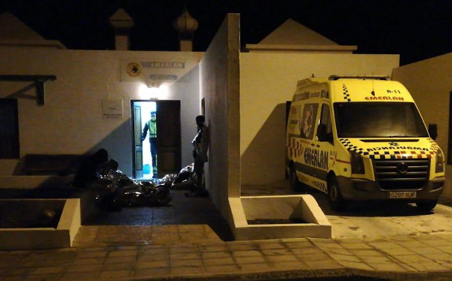 Desde Emerlan se indicó que hubo migrantes que llegaron mojados a su puesto en la localidad del municipio de Tinajo porque se habían tirado al agua en el muelle.