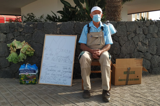 Peláez considera que en los mercadillos se cumplen todas las medidas de seguridad “habidas y por haber” y señala que es la segunda vez que se suspenden. Todas las semanas, este agricultor acude a los mercadillos de Tinajo y Arrecife.