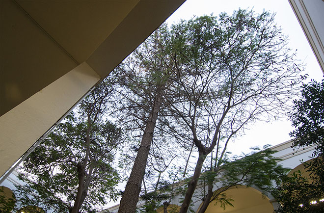 En el libro se decía esto: “Bajo el árbol, la atmósfera es la propia de un peculiar patio canario, siempre en amorosa penumbra, siempre impregnada en olores juveniles de colegio, en gritos adolescentes, en nervios e ilusiones. Tiene también este árbol cierto aire fúnebre triste. Al verlo, es difícil evitar el recuerdo de los cipreses, descubrir en él cierto aire de la lánguida inmortalidad de los camposantos”.