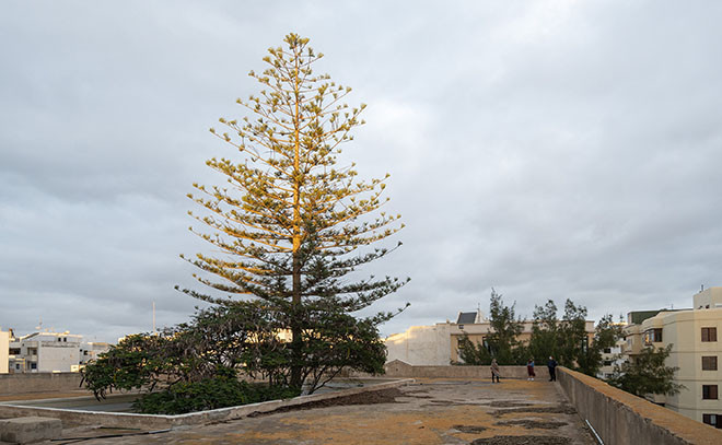 La araucaria del Agustín tiene unos 70 años y mide 20 metros. Preside el jardín interior casi desde que se abrió el centro educativo. Es el árbol más alto de Arrecife