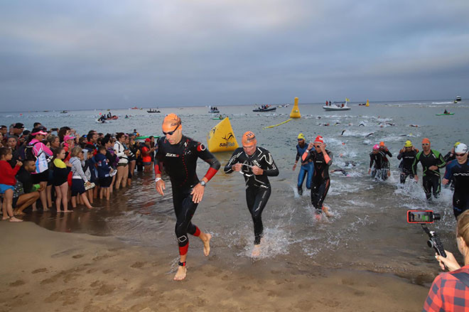 Como es habitual miles de aficionados siguieron el recorrido de la prueba que partió a las 7.00 horas de la Playa Grande de Puerto del Carmen con el segmento de natación en el que Emilio Aguayo hizo un buen parcial, cubriendo los 3,8 kilómetros de recorrido en 49 minutos y 15 segundos, seguido muy de cerca por Van Lierde y Kramer, ambos con un tiempo de 50:25.