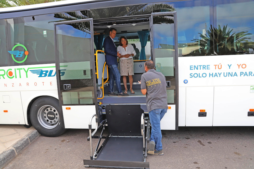 El Cabildo de Lanzarote, que preside Oswaldo Betancort, presentó en la mañana de este jueves, los nuevos vehículos que se incorporarán desde el próximo lunes a la flota de transporte interurbano de guaguas de Lanzarote.