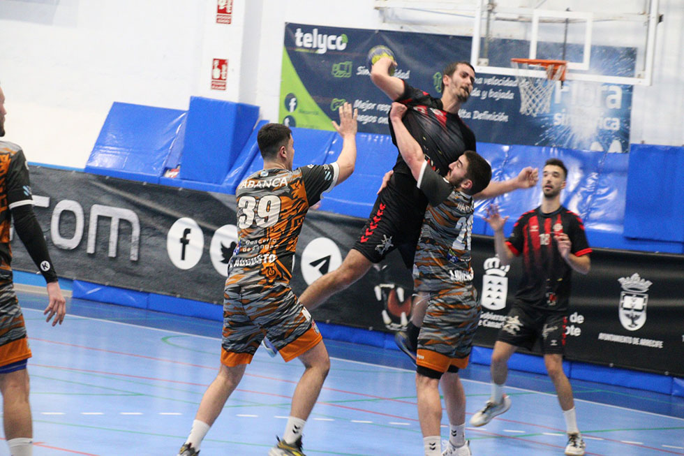 La ventaja se elevó por arriba de los diez goles en los minutos finales de la primera parte, y con el marcador de 23 a 11 se llegó al final de la primera parte. Los lanzaroteños habían dado toda una exhibición de juego ofensivo y de contundencia defensiva.