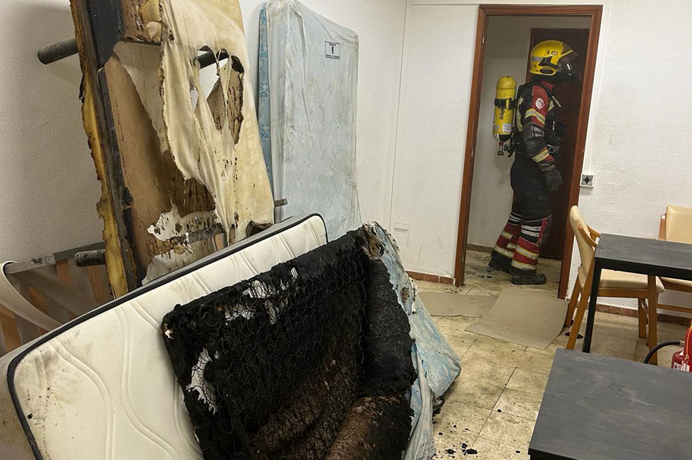 Los bomberos localizaron el incendio, que afectaba a unos colchones en un pasillo y se procedió a su extinción, para posteriormente ventilar el inmueble.