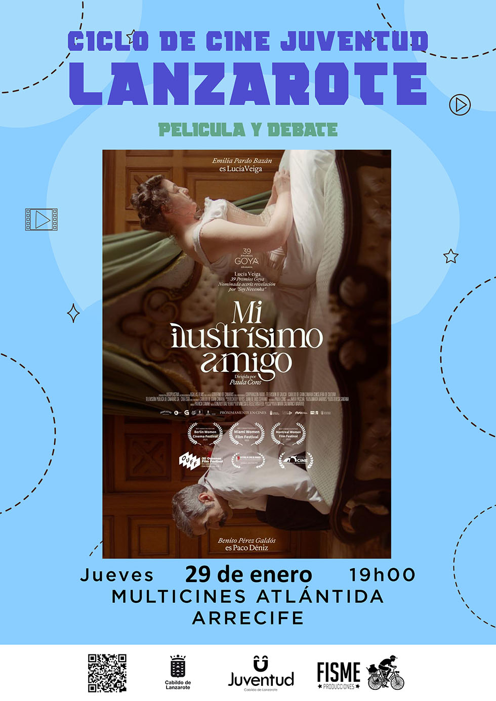 El Cabildo de Lanzarote, a través del Área de Juventud, que dirige la consejera Aroa Revelo, comienza la programación de 2026 del Ciclo de Cine Juventud Lanzarote con la proyección de la película Mi ilustrísimo amigo, estrenada en 2024 y dirigida por Paula Cons. La cita será el próximo jueves 29 de enero, a las 19.00 horas, en la sala 4 de los Multicines Atlántida, en Arrecife.