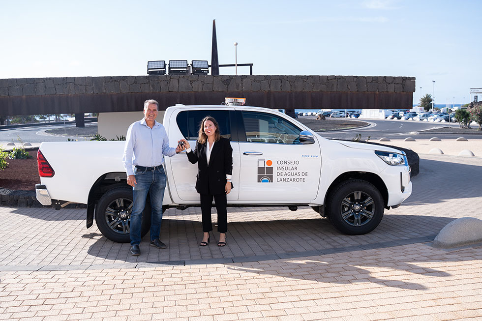 Este lunes ha tenido lugar, frente al edificio del Cabildo Insular, el acto de recepción del nuevo Toyota Hilux blanco, un todo terreno automático y con tracción a las cuatro ruedas. En el acto han participado el consejero de Aguas y la representante de Sol Naciente Automoción, S.L, la empresa adjudicataria del contrato por procedimiento abierto simplificado con sumario en el que participaron cuatro licitadores.