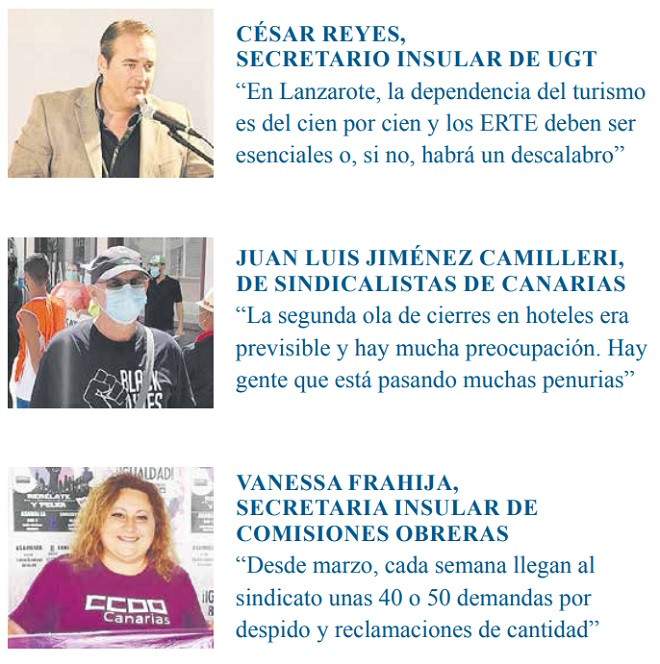 En cualquier caso, en Canarias hay afectados más de 200.000 trabajadores por los ERTE. De esos, en la provincia de Las Palmas, según los datos de CCOO., aún quedaban a finales de agosto más de 45.000, así que más de 10.000 personas seguirían todavía en regulación en Lanzarote.