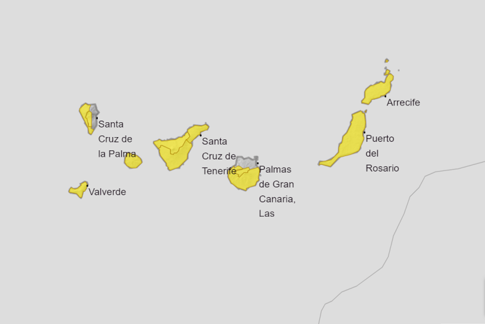 La Agencia Estatal de Meteorología (AEMET) ha emitido avisos amarillos por rachas de viento en algunas islas, por temperatura extrema máxima, y por calima. El cambio del viento en zonas altas y de cumbres a componente sur y/o al este ha sido el responsable de la entrada de calima, que a partir de la tarde de este domingo se ha extendido en altura de este a oeste del Archipiélago, y que en la jornada del lunes podría reducir la visibilidad en las medianías y zonas altas de las islas orientales.
