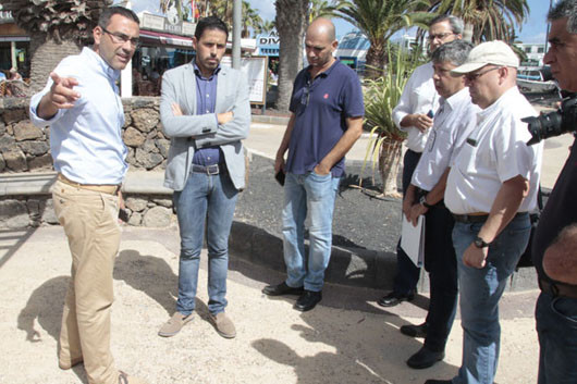 El alcalde de Teguise, Oswaldo Betancort, mantuvo un encuentro a pie de calle con el director general de Infraestructura Turística del Gobierno de Canarias, Héctor Suárez, y técnicos de la empresa Gesplan, en el que exigió una respuesta a la “inacabada” obra de pavimentación de la avenida Arenas Blancas, conocida por el paseo de Las Cucharas, y que “es transitada cada día por miles de vecinos y turistas”.