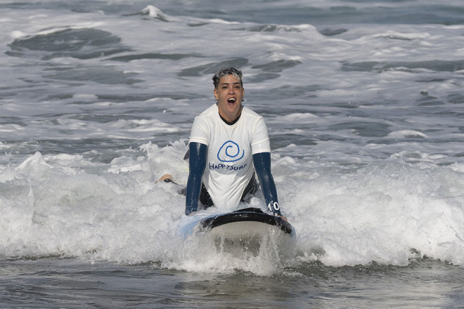 Una lanzaroteña que ya ha superado los 80 y una niña que llegó a la Isla a bordo de una patera tienen algo en común: las dos le tenían terror al mar, y las dos acabaron disfrutando sobre una tabla de surf sin saber nadar. El “culpable” es Niccolò Taverna, que hace unos meses puso en marcha un proyecto solidario que llevaba años rondando en su cabeza: Happy Surf. “Quería hacer felices a personas menos afortunadas”, explica.