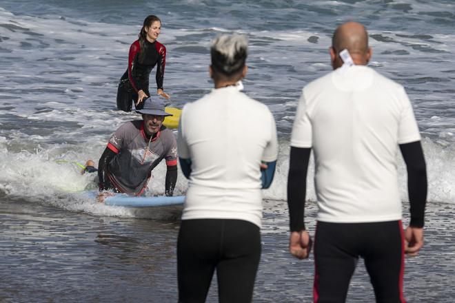 Por sus clases, concebidas como una terapia física y emocional, han pasado desde hombres y mujeres mayores hasta personas con escasos recursos, con enfermedades o con problemas de discapacidad física o de salud mental. También menores migrantes que saben lo que es cruzar el océano en una embarcación precaria, y que en esas sesiones aprendieron a mirar el mar de otra forma. Como esa niña que no sabía nadar y que no quería volver a acercarse al agua. “Tengo una foto de ella donde se levanta y surfea una ola, y tiene una sonrisa que para mí vale más que un millón de euros”.