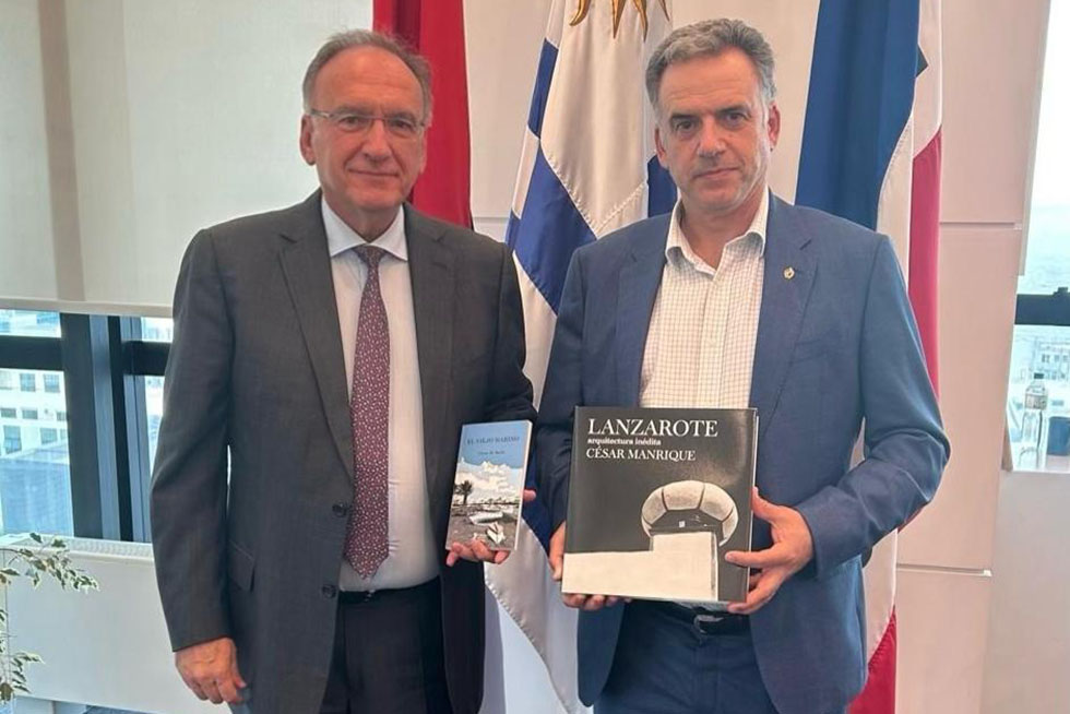 En el transcurso de la reunión, el senador hizo entrega al presidente uruguayo de dos publicaciones vinculadas a la cultura y la identidad de Lanzarote: Lanzarote. Arquitectura inédita, de César Manrique, y El viejo marino, de Víctor Bello.