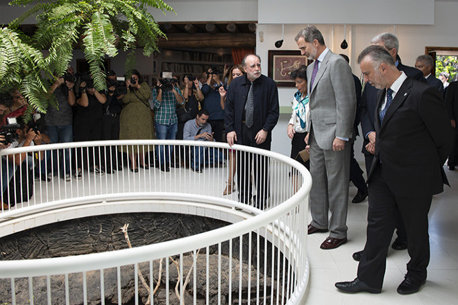 Según algunos asistentes, el rey se interesó por todos los aspectos de la muestra e hizo muchas preguntas. Preguntó, entre otras cosas, por el momento en que se empezó a proteger el territorio en Lanzarote o el método de trabajo de César para sus obras espaciales.