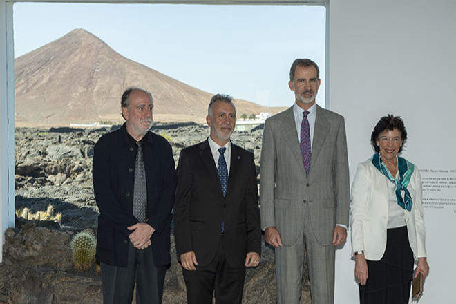 El Rey Felipe VI ha visitado este miércoles por la mañana en la Fundación César Manrique la exposición central del centenario, titulada César Manrique, es un placer, una muestra comisariada por Fernando Gómez Aguilera y que abarca los diversos rasgos que conformaron el personaje polifacético de César hasta construir un icono social y mediático en los años setenta y ochenta del pasado siglo.