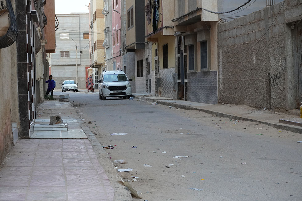 Miles de saharauis terminarían por instalarse en Tinduf (Argelia), tras verse forzados a atravesar el desierto huyendo de los ataques de Marruecos. Llegaron a una zona considerada segura, ya en territorio argelino, y a las afueras de dicha ciudad se instalaron en campamentos temporales, que recibieron los nombres de las ciudades de las que huían: Esmara, El Aaiún, Auserd, Bojador o Dajla. Cincuenta años después los campamentos han visto morir y nacer a distintas generaciones, y se estima que 170.000 personas residen allí actualmente, según cifras de Cruz Roja, en una situación de total dependencia de la ayuda humanitaria. Los vaivenes presupuestarios y las disputas políticas que condicionan el mundo de la cooperación y de la acción humanitaria ponen en riesgo la supervivencia y la salud de miles de personas atrapadas en los campamentos de Tinduf.