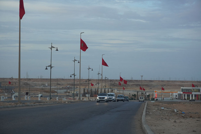 Numerosas banderas marroquíes impuestas por las fuerzas de ocupación.